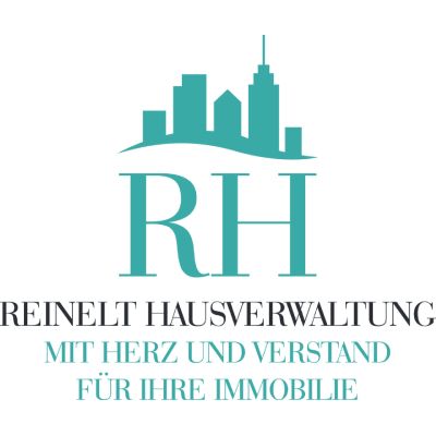 Logo for Reinelt Hausverwaltung, featuring a teal skyline and the name in teal, with